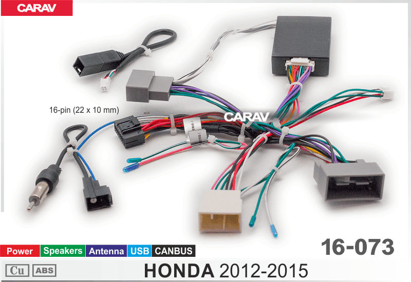 —CARAV 16-073 Комплект проводов для подключения Android ГУ (16-pin) на а/м HONDA 2012-15 / Power + Speakers + Antenna + USB + CANBUS